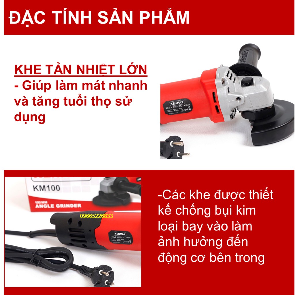 Máy mài góc Kenmax KM 100S ⚡️ TẶNG ĐĨA CẮT ⚡️ TẶNG CẶP CHỔI THAN ⚡️ CÔNG SUẤT 850W ⚡️ THƯƠNG HIỆU NHẬT BẢN