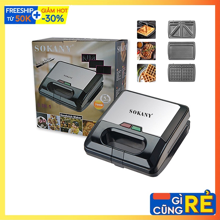 Giới thiệu [Mã ELHADEV giảm 4% đơn 300K] Máy Nướng Bánh Waffle, Máy Kẹp Bánh Mì Cho Bữa Sáng Đa Năng SOKANY 3in1