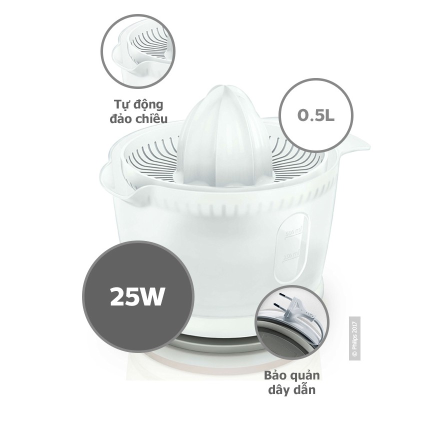 Giới thiệu Máy Vắt Cam Philips HR2738 Màu trắng 0.5L