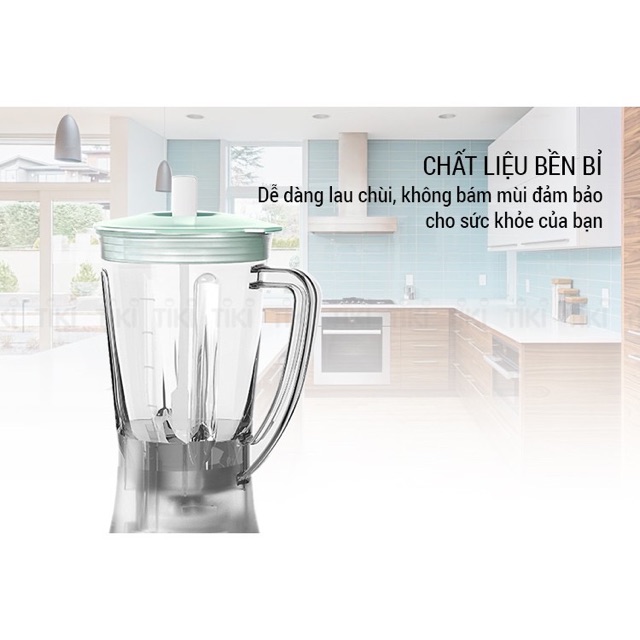 Cối máy xay lớn bằng chất liệu nhựa cao cấp, an toàn. Chất liệu này dễ dàng lau chùi, không bám mùi đảm bảo cho sức khỏe của bạn và thành viên trong gia đình. Đế cối được thiết kế với bánh răng theo dạng xoay và khớp khóa an toàn. Máy chỉ hoạt động khi vị trí của cối và máy được lắp khớp với nhau. Chức năng này giúp bảo vệ máy và cho máy sử dụng lâu hơn.