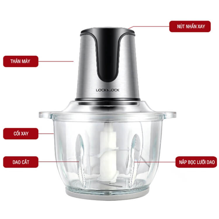 Sản phẩm có cối xay được gia công từ thủy tinh cao cấp, độ bền cao, chịu lực tốt, không chứa chất độc hại, an toàn khi sử dụng, bảo vệ sức khỏe người dùng. Với dung tích 2L, sức chứa tốt, lòng cối sâu, dùng để xay thịt và rau củ, đáp ứng tốt yêu cầu của người dùng. Đặc biệt, phần thân trên của máy xay thịt Lock&Lock được gia công từ thép không gỉ, hạn chế bám bẩn, dễ dàng lau chùi sau khi sử dụng.
