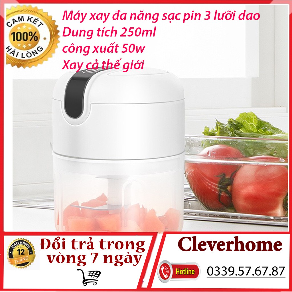 Máy Xay tỏi ớt Mini Sạc Điện, Có Cổng Sạc Usb, dung tích 250ml công xuất 50w Nhỏ Gọn Tiện Ích Dễ Sử Dụng