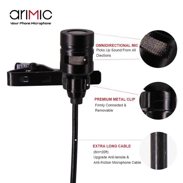 Micro Cài Áo Cho Điện Thoại Và Máy Ảnh Arimic Dual Lavalier