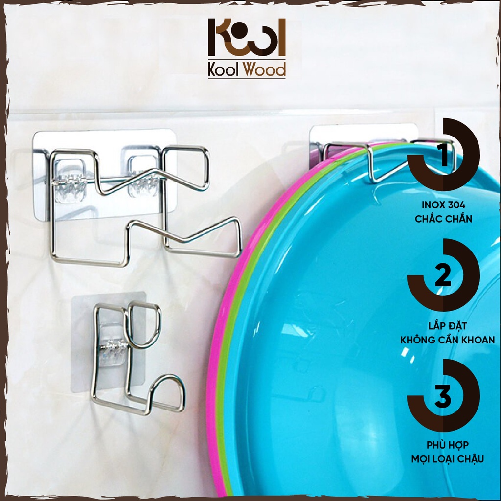 Móc Treo Chậu Tắm Đa Năng, Móc Treo Thau Đồ Dùng Nhà Bếp Dán Tường Inox 304