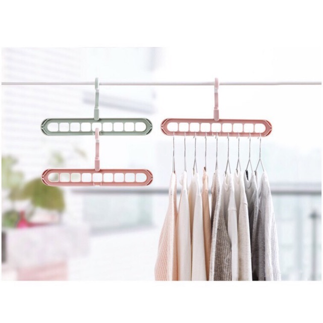 - Móc treo quần áo đa năng 9 lỗ tiện dụng giúp bạn tiết kiệm diện tích, treo thêm được nhiều quần áo.- Với thiết kế đầu xoay 360 độ giúp bạn có thể treo ngang, treo dọc tùy ý.