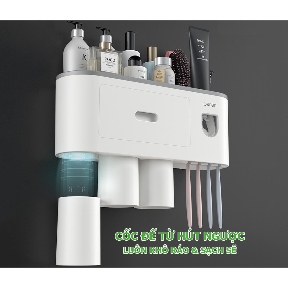 Bộ Nhả Kem Đánh Răng Tự Động, Kệ Để Đồ Phòng Tắm Cao Cấp Tặng Kèm Miếng Dán