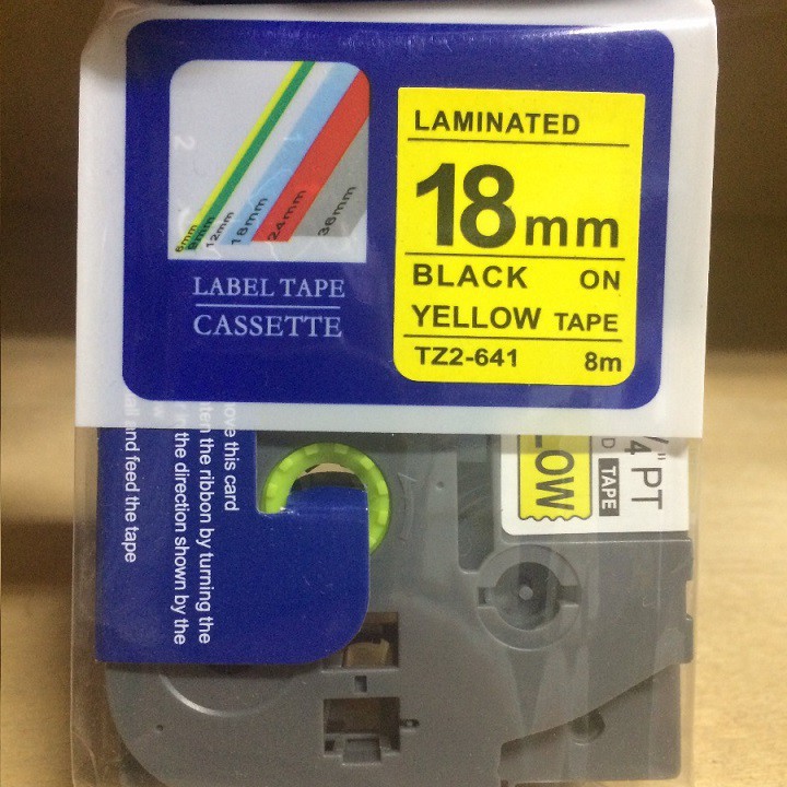 Giới thiệu Nhãn in TZ2-641 tiêu chuẩn - Chữ đen trên nền vàng 18mm