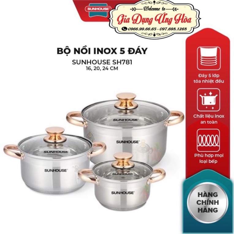 Bộ Nồi 5 Đáy Cao Cấp Sunhouse Dùng Mọi Loại Bếp SH781 - Bộ Nồi Inbox Cao Cấp, Truyền Nhiệt Nhanh, Tỏa Nhiệt Đều1. THÔNG TIN SẢN PHẨM