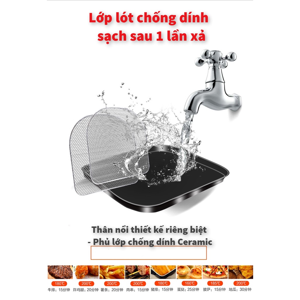 👉 Công suất 1800W kết hợp công nghệ chiên không dầu hiện đại cho món ăn chín nhanh, ít dầu, bảo vệ sức khỏe của bạn, hạn chế các bệnh về tim mạch