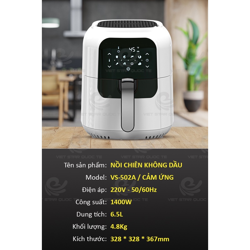 [Mã ELHADEV giảm 4% đơn 300K] Nồi Chiên Không Dầu 6.5L Việt Star Quốc Tế VS-502 Cảm Ứng Bảo Hành 12 Tháng