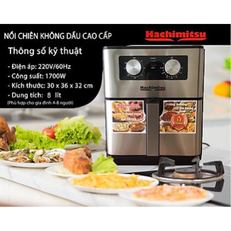 Thiết Bị Điện Gia Dụng > Đồ gia dụng nhà bếp > Nồi chiên không dầu || Nồi chiên không dầu 8L- Điều khiển cơ-Hachimitsu HC668- hàng chính hãngCòn hàng
