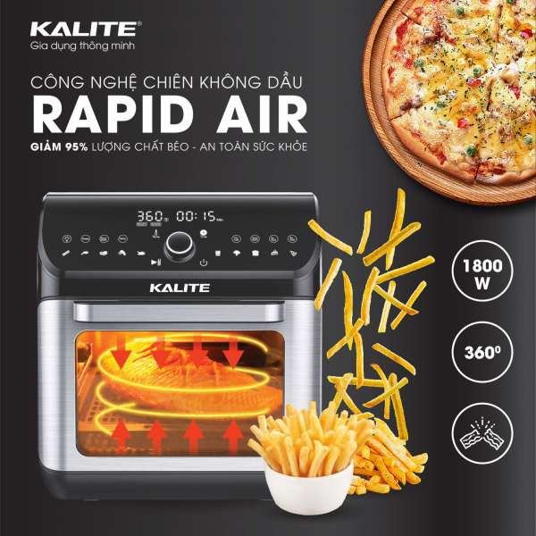Đây là một trong những chiếc nồi chiên không dầu có dung tích lớn nhất nhà Kalite với 12L. Dung tích siêu khủng này giúp bạn có thể tha hồ nướng gà nguyên con, nướng tới 20 cánh gà cùng lúc, pizza với đường kính 20 cm và hơn 800g khoai tây,…