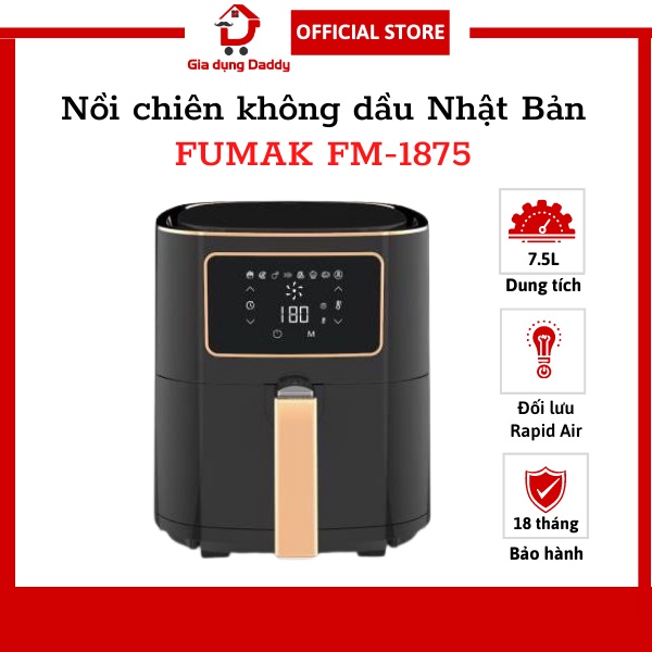 Nồi chiên không dầu điện tử chống dính Fumak FM-1875, Thương hiệu Nhật Bản Dung Tích 7.5L Công nghệ đối lưu, BH 18 tháng