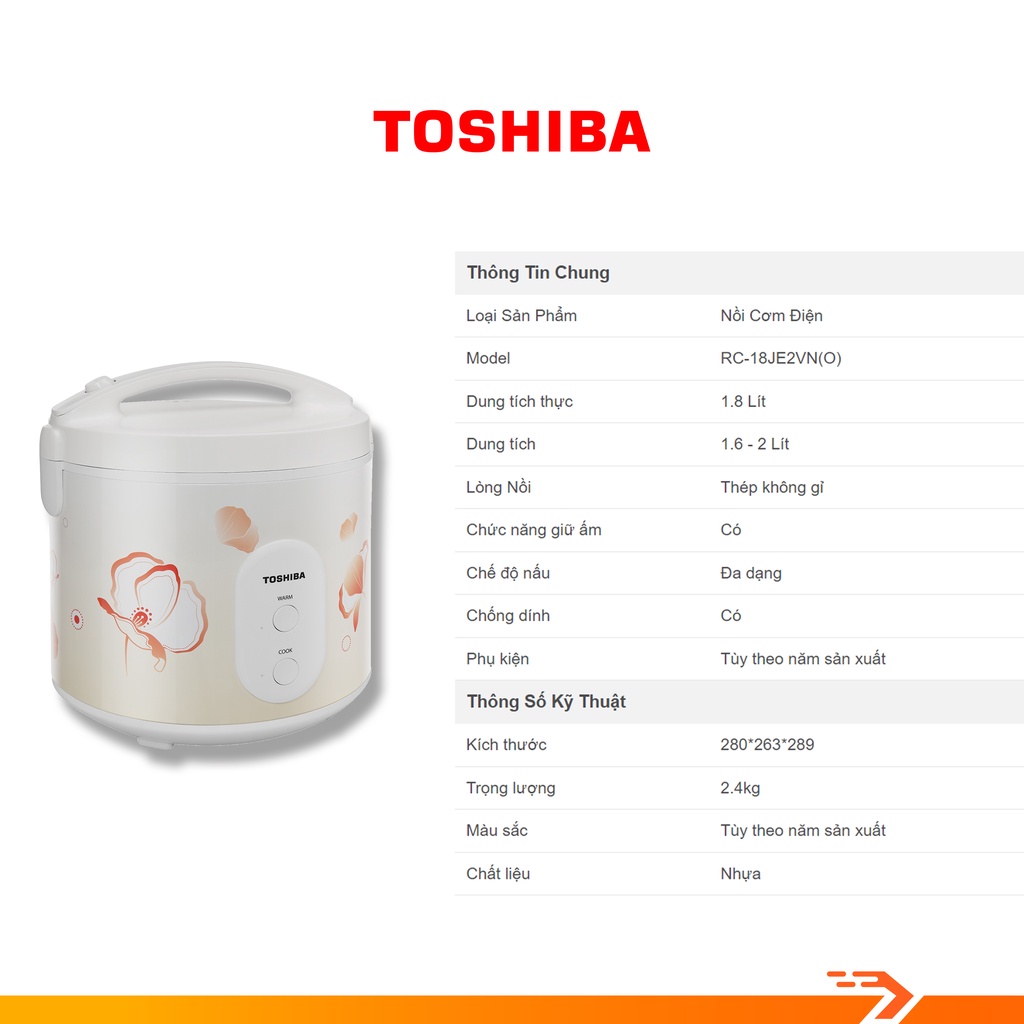 Nồi Cơm Điện Toshiba RC-18JE2VN(O) - Bảo Hành Chính HãngTHÔNG SỐ KỸ THUẬT: