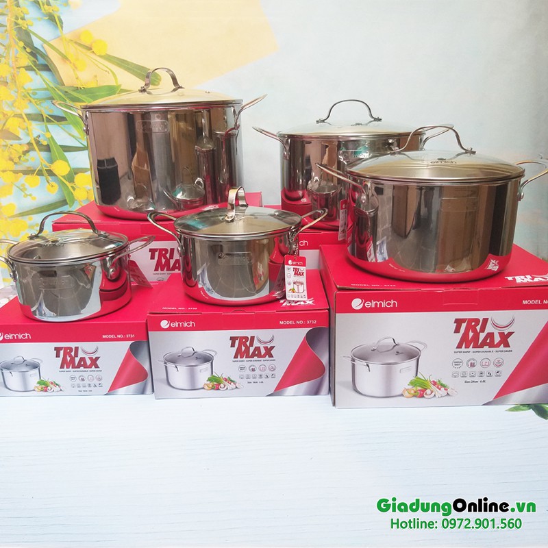 Nhà cửa & Đời sống > Dụng cụ nhà bếp > Nồi || Nồi Inox 304 cao cấp 3 lớp đáy liền Elmich Tri Max đủ sizeCòn hàng