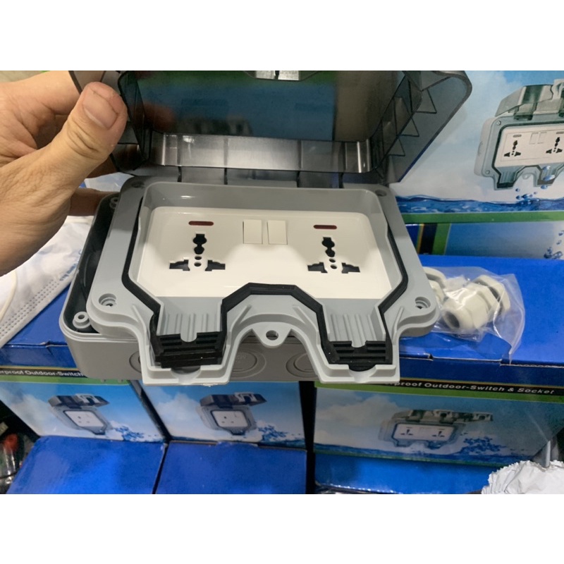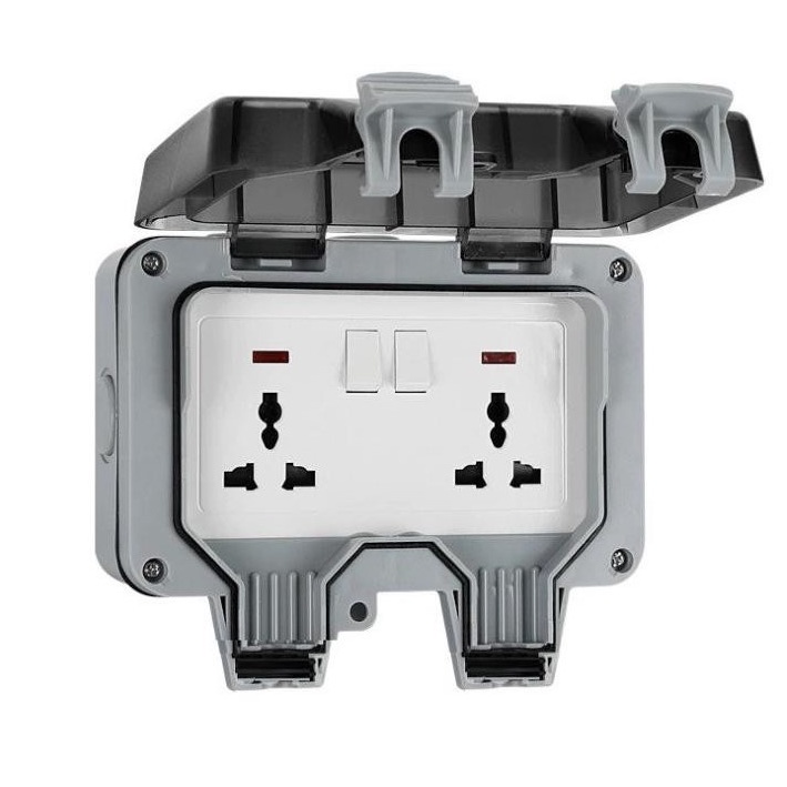 Thiết Bị Điện Gia Dụng > Mạch điện & Phụ tùng > Ổ cắm điện & Dây nối || Ổ cắm điện đôi ngoài trời chống nước kèm công tắc bao gồm cả hộp và mặt ổ cắmCòn hàng