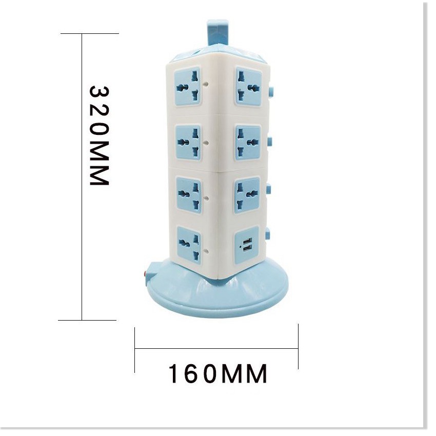 Ổ cắm điện đa năng đươc thiết kế thông minh với 5 tầng dạng tháp đẹp mắt. Tích hợp 20 ổ cắm đa năng hỗ trợ 6 loại phích cắm khác nhau, đồng thời tích hợp 3 cổng sạc qua cân cắm USB phổ biến với dòng sạc lên đến 2.1A.