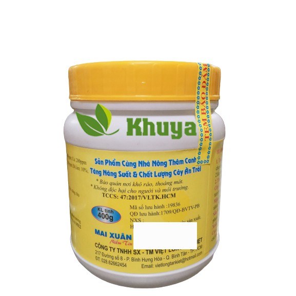 - Về vấn đề sản phẩm: Vui lòng chỉ nhận hàng khi bên ngoài thông tin vận chuyển như sau: Tên người gửi: Vật tư nông nghiệp Khuya, Địa chỉ: số 139, quốc lộ 91, khu vực Phụng Thạnh 1, phường Thốt Nốt, quận Thốt Nốt, thành phố Cần Thơ, Số điện thoại: 0907250797. Cửa hàng chỉ chịu trách nhiệm khi sản phẩm được bán ra từ cửa hàng và có tem mã vạch hoặc thông tin xuất kho từ cửa hàng các sản phẩm khách mua ở cửa hàng khác vui lòng liên hệ nơi bán sản phẩm để được hỗ trợ về những vấn đề phát sinh sau khi nhận cũng như sử dụng. Xin cảm ơn!