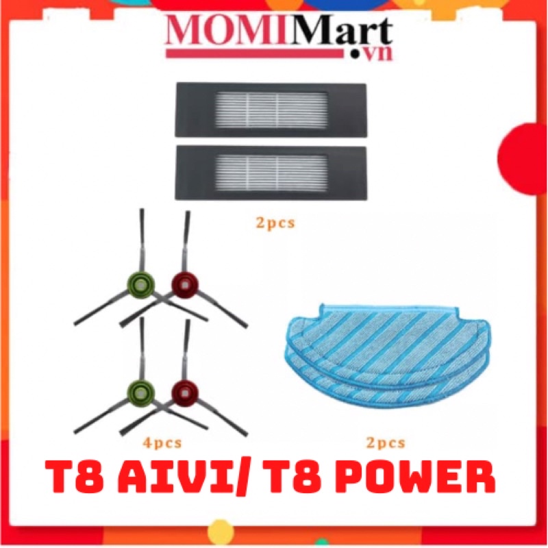 Giới thiệu Bộ phụ kiện dành cho robo T8 aivi MAX Power T9 Aivi Max N8 Pro, 2 khăn, 2 lọc, 2 cặp chổi ven