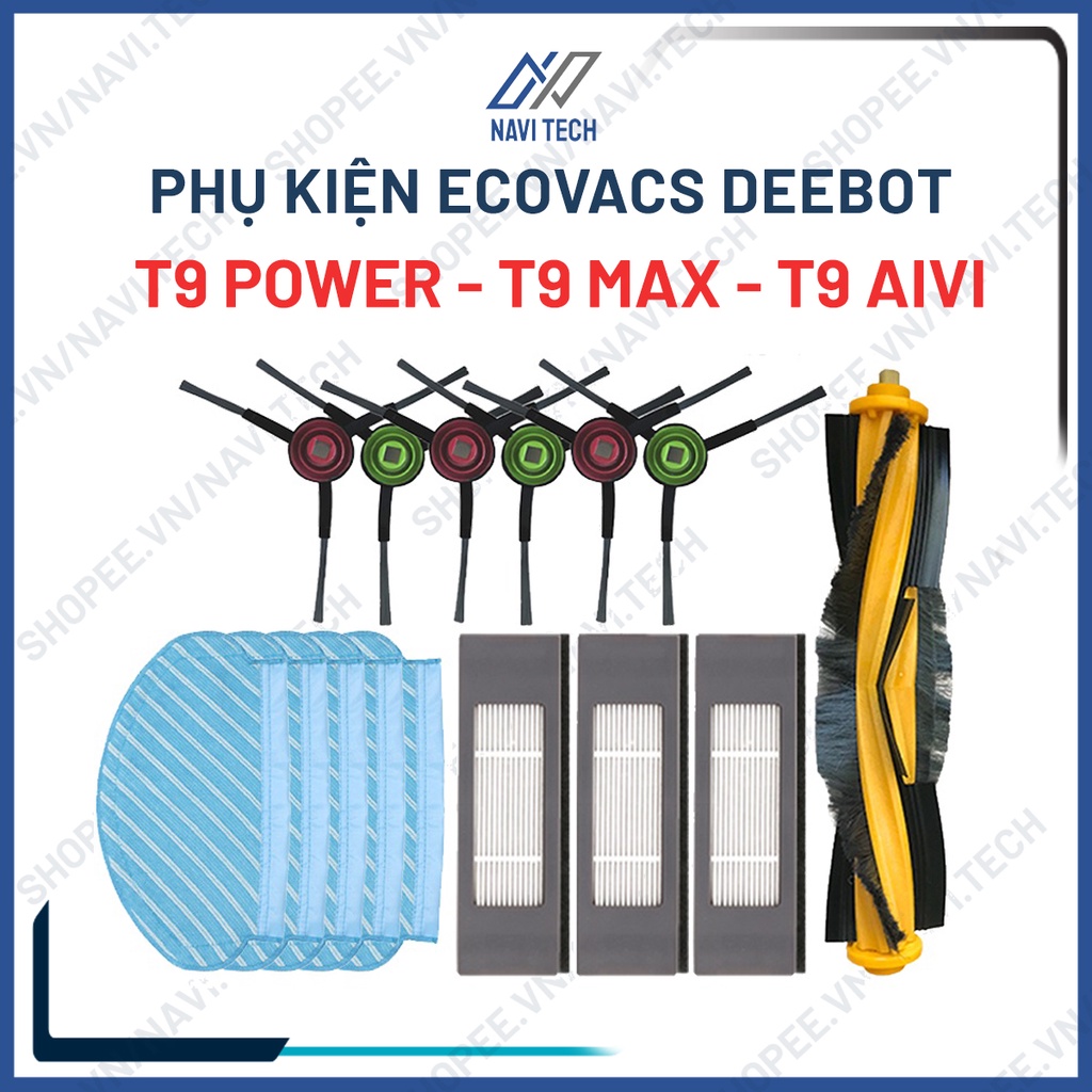 Phụ kiện khăn, chổi cạnh, chổi chính, lọc bụi Robot Ecovasc Deebot Ozmo T9, T9 Aivi, T9 Power, T9 Max, T9 Aivi Plus