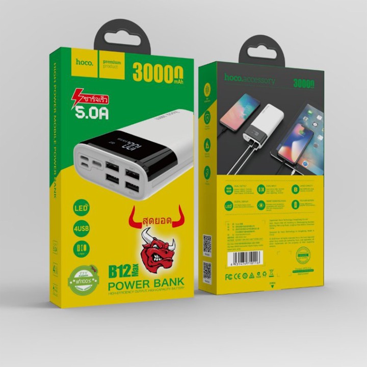 - Pin Sạc dự phòng 4 cổng USB hiệu HOCO B12Z 30000mAh sở hữu thiết kế dạng khối, màu trắng, đen sang trọng, dễ dàng cho bạn bỏ vào túi, balo, cốp xe để sạc cho các thiết bị khi bên cạnh bạn không có ổ điện hay nguồn điện. Bên cạnh đó, sản phẩm sử dụng lõi pin chất lượng sạc ổn định, bền bỉ và an toàn cho các thiết bị người dùng.