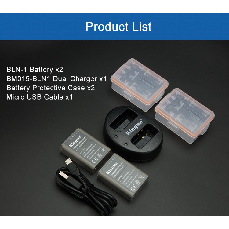 Pin sạc Kingma cho OLYMPUS BLN-1 + Hộp đựng Pin, Thẻ nhớ