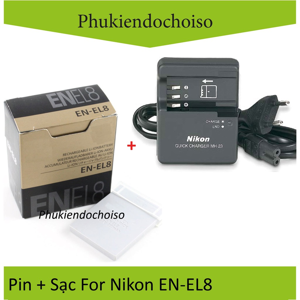 Bộ pin sạc thay thế 1 Pin 1 Sạc máy ảnh Nikon EN-EL8