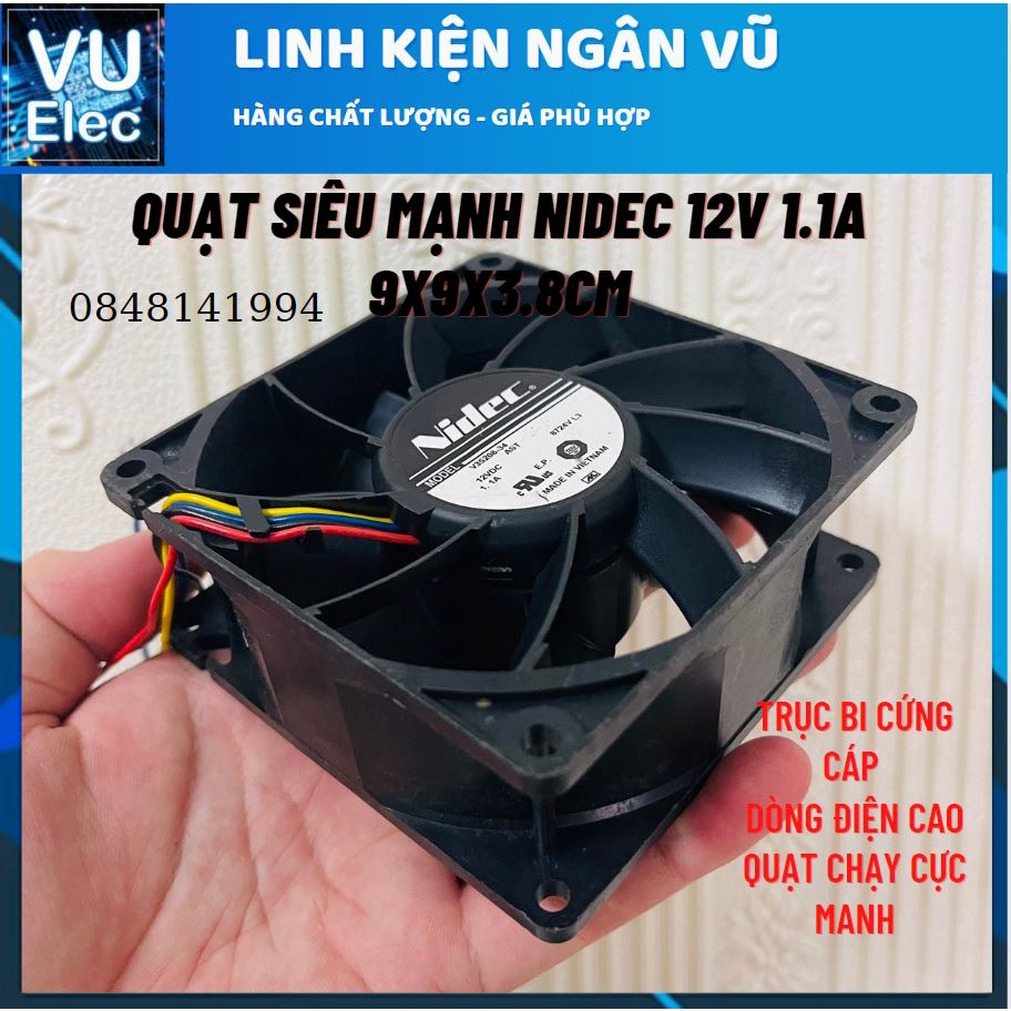 Quạt Tản nhiệt 12V 1.1A- QUạt hút gió siêu mạnh Hãng NIDEC 12V 9x9x3.8CM