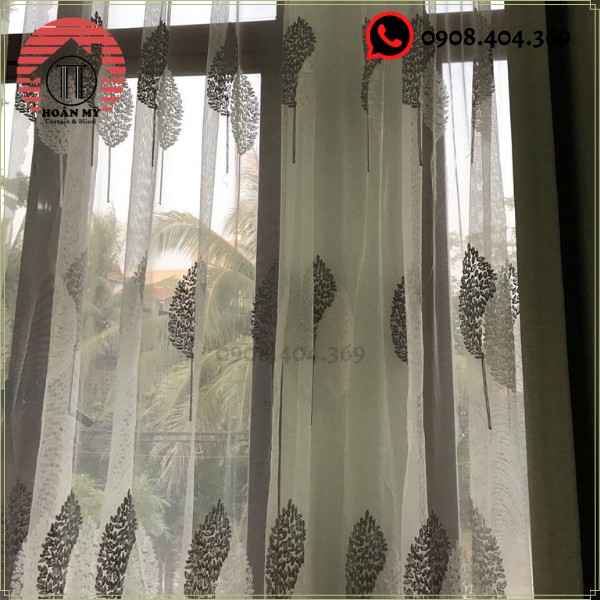 Chất liệu rèm: Vải voan có thêu lá màu ghi như ảnh ( nhìn xuyên mờ )