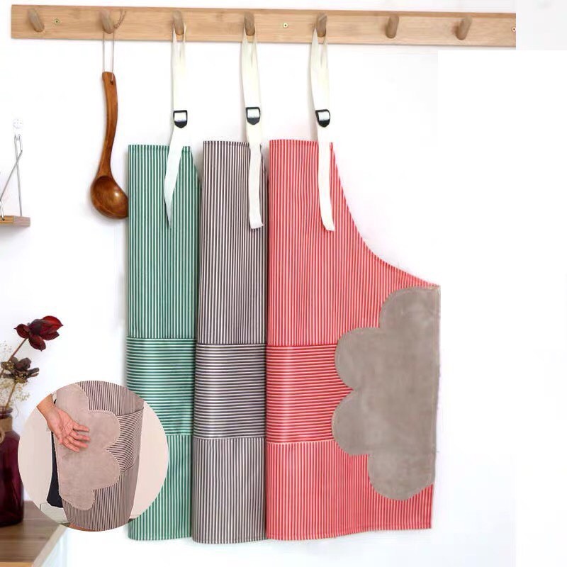 Giới thiệu [RẺ VÔ ĐỊCH] Tạp Dề Nấu Ăn Kẻ Sọc Hình Hoa Hai Bên, Chống Thấm Nước, Có Túi Đựng, Có Chỗ Lau Tay Tiện Dụng