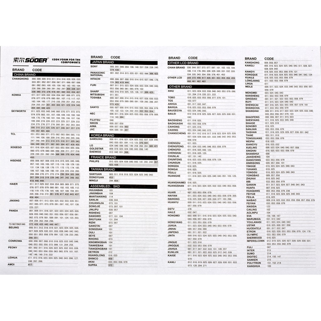 Xem hình bảng mã để biết remote hoạt động phù hợp với tivi tương ứng.