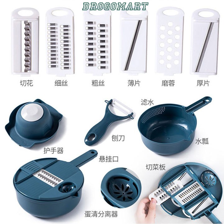 Nhà cửa & Đời sống > Dụng cụ nhà bếp > Bàn nạo, dụng cụ bào, cắt || Bộ Rổ Nạo Rau Củ Nhà Bếp Đa Năng 12 trong 1, Nạo Bào Sợi, Nạo Vỏ,Thái Nảt, Tách Lòng Đỏ TrứngCòn hàng