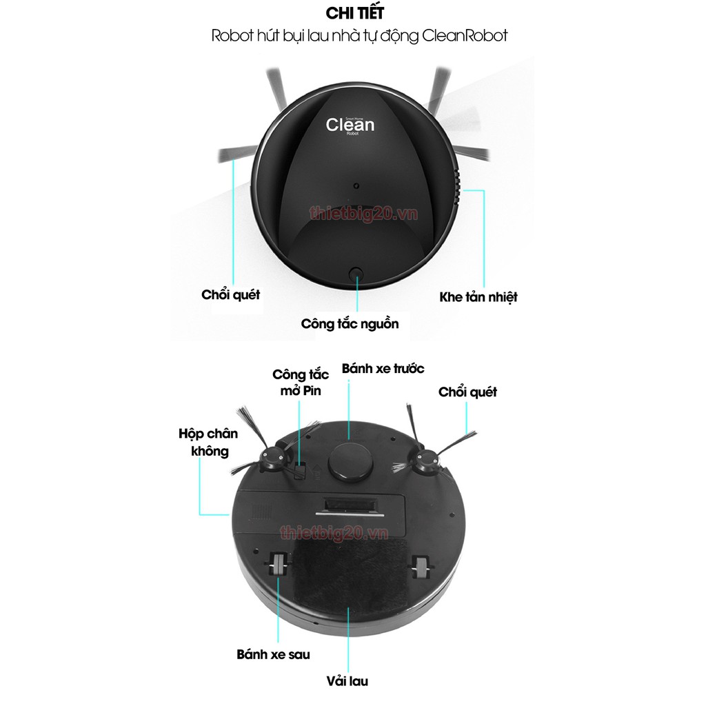 - Robot hút bụi lau nhà Clearn thiết kế nhỏ gọn, tinh tế và dễ sử dụng. Sản phẩm được tích hợp hệ thống bánh xe linh hoạt giúp robot có thể tự chạy quanh nhà để lau hút bụi, đặc biệt tránh được việc phải tiếp xúc trực tiếp với bụi bặm, tiếng ồn.