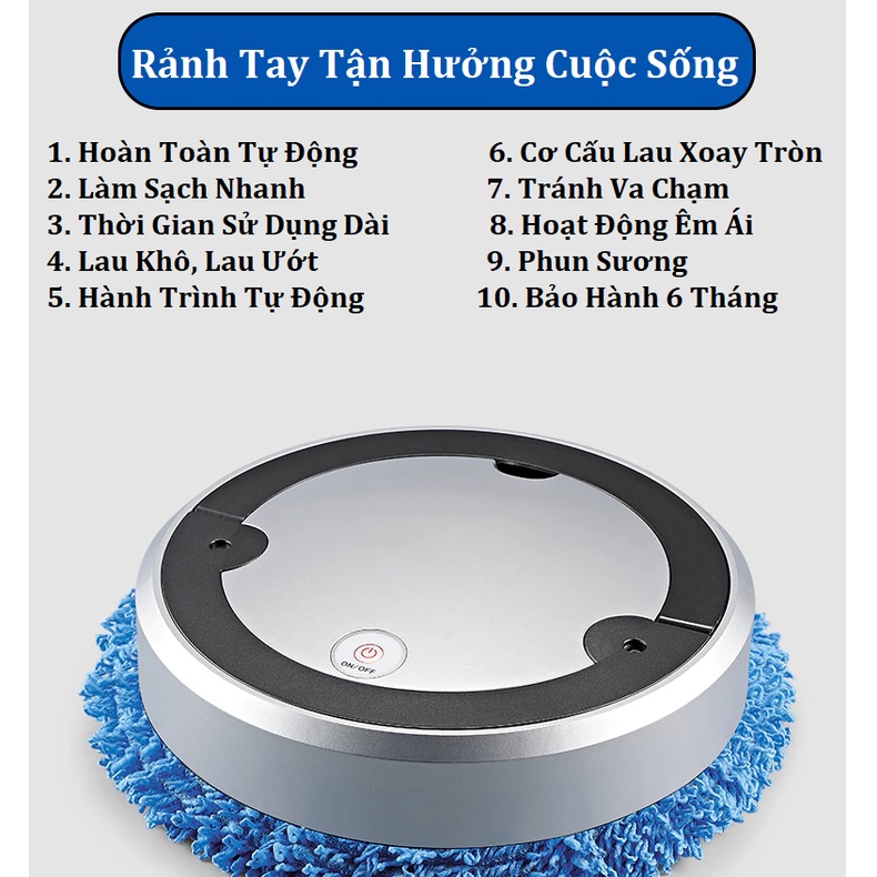 Robot lau nhà - Máy lau nhà thông minh lau khô và ướt kết hợp xông tinh dầu thanh lọc không khí model A8 thực sự là một thiết bị hữu ích cho chị em đỡ vất vả trong công việc lau nhà. Chỉ cần cắm sạc pin rồi bấm nút là máy sẽ tự động lau sạch nền nhà trong khi bạn rảnh tay làm việc khác như xem phim, đọc báo, nấu cơm, trông bé .....Thông tin sản phẩm