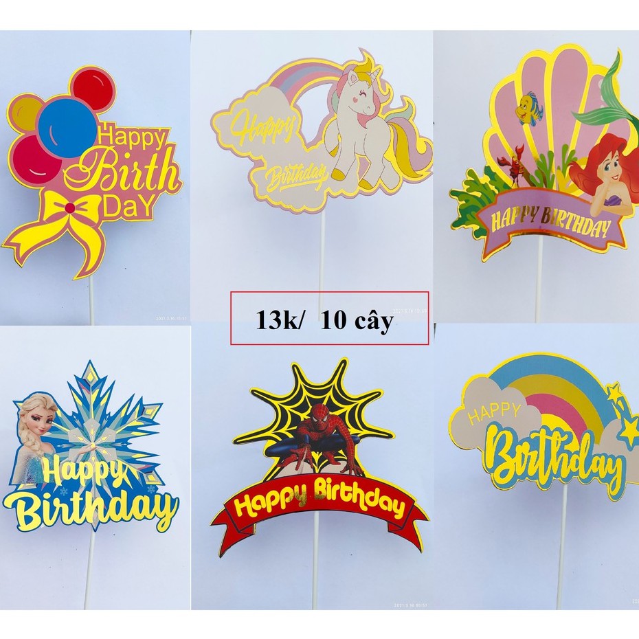Giới thiệu Set 10 hình giấy Happy birthday ánh kim trang trí bánh sinh nhật bánh sinh nhật