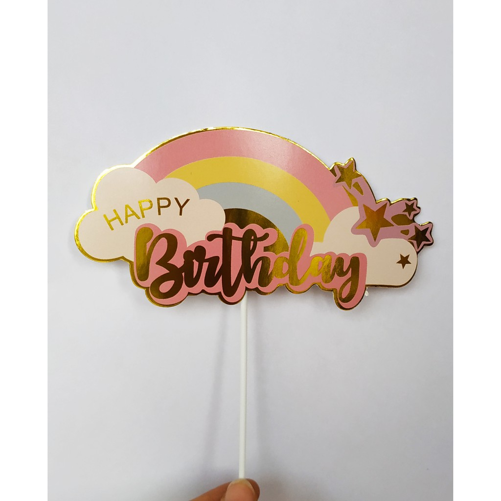 Set 10 hình giấy Happy birthday ánh kim trang trí bánh sinh nhật bánh sinh nhật