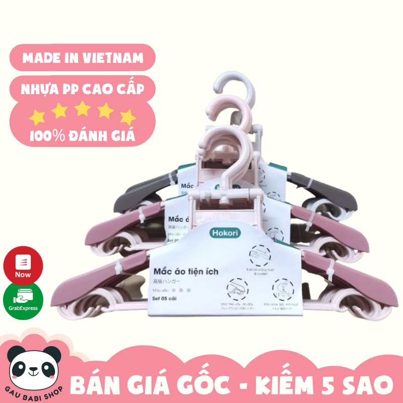 Nhà cửa & Đời sống > Sắp xếp nhà cửa > Mắc áo || Set 5 móc treo quần áo Hokori Việt Nhật 2832, thiết kế chống trượt hai bên, móc treo giữ váy, có thể kéo dàiCòn hàng