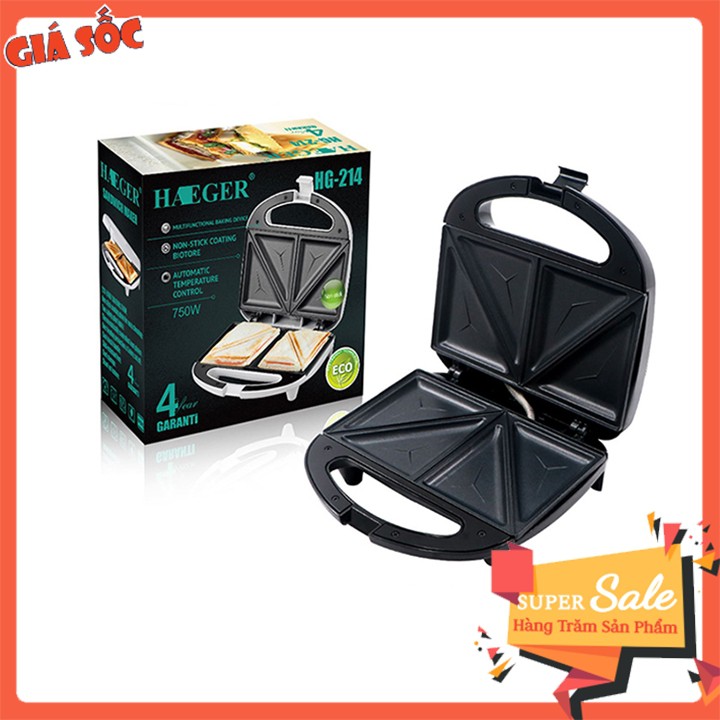 Thiết Bị Điện Gia Dụng > Đồ gia dụng nhà bếp > Máy nướng bánh || [ Siêu Sale ] Máy Nướng Bánh Mì Sandwich, Máy Kẹp Bánh Mỳ HAEGER Khuôn Tam GiácCòn hàng