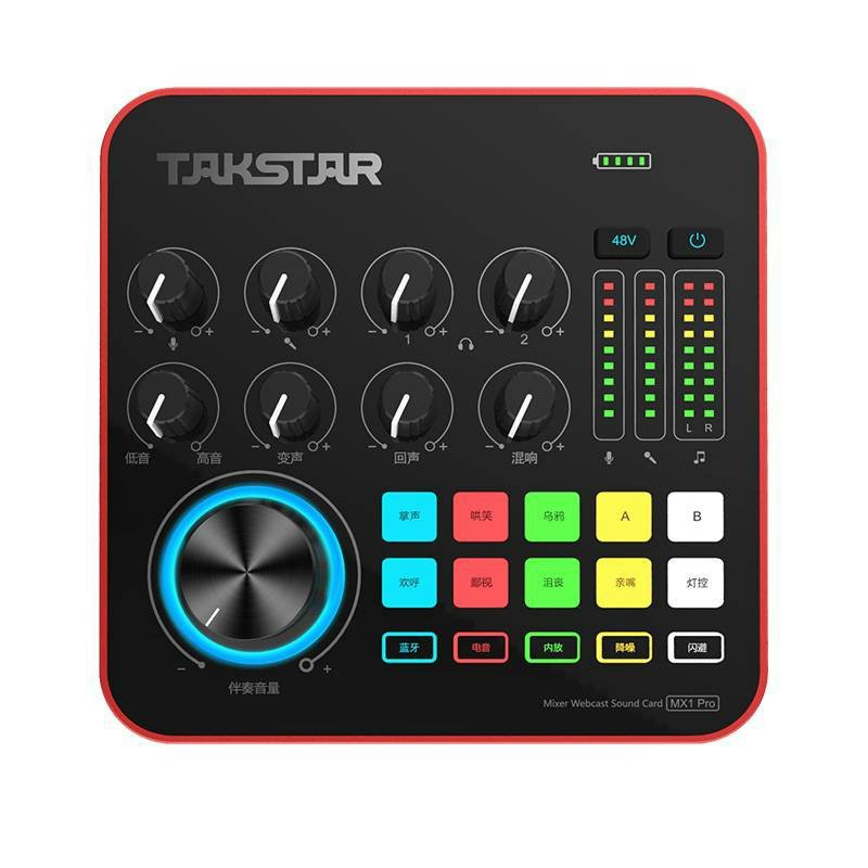 Sound card Takstar MX1 Pro Thu Âm, Livestream Chuyên Nghiệp Hỗ Trợ Bluetooth , 8 Hiệu Ứng, Đèn LED đổi màu, Tích Hợp Pin