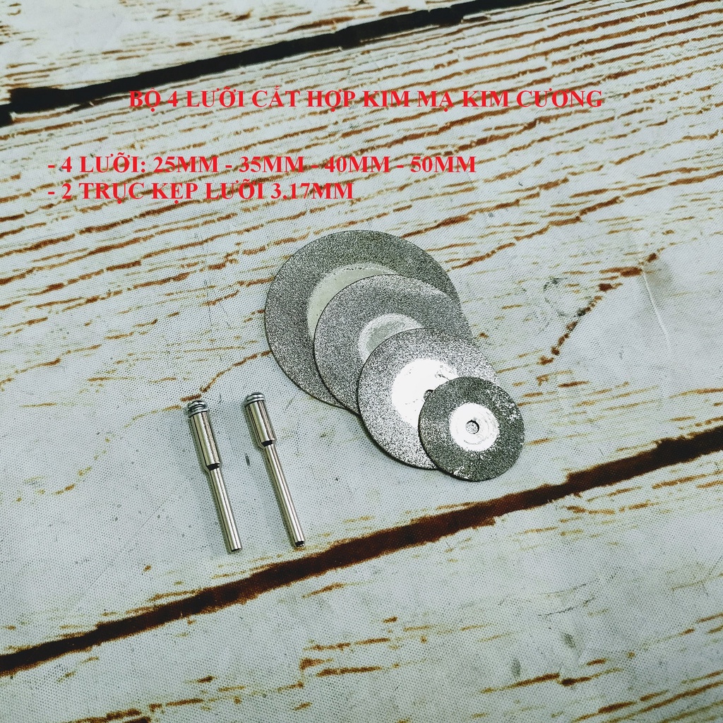- Mua bộ 4 lưỡi cắt 4 cỡ từ 25mm + 35mm + 40mm + 50mm + 4 trục kẹp lưỡi 3.17mm