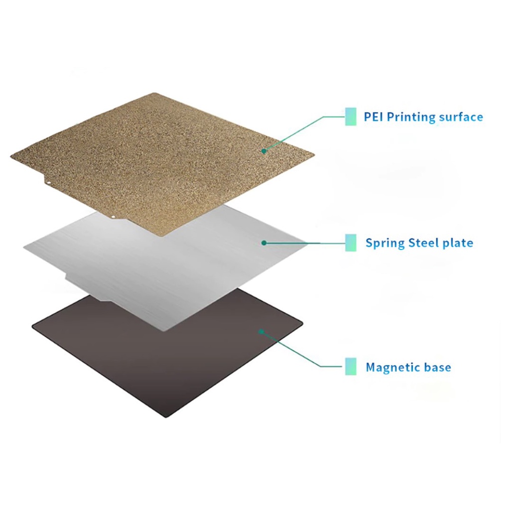 Tấm dán bàn in PEI nhám nam châm cho Máy in 3D, Bộ 2 tấm A B- Heatbed stick magnetic for 3d printingTấm pei chất liệu thép không gỉ cao cấp độ phẳng và độ đàn hồi cao, bền bỉ và dễ dàng vệ sinh, chịu được nhiệt độ lên đến 260 độ C .