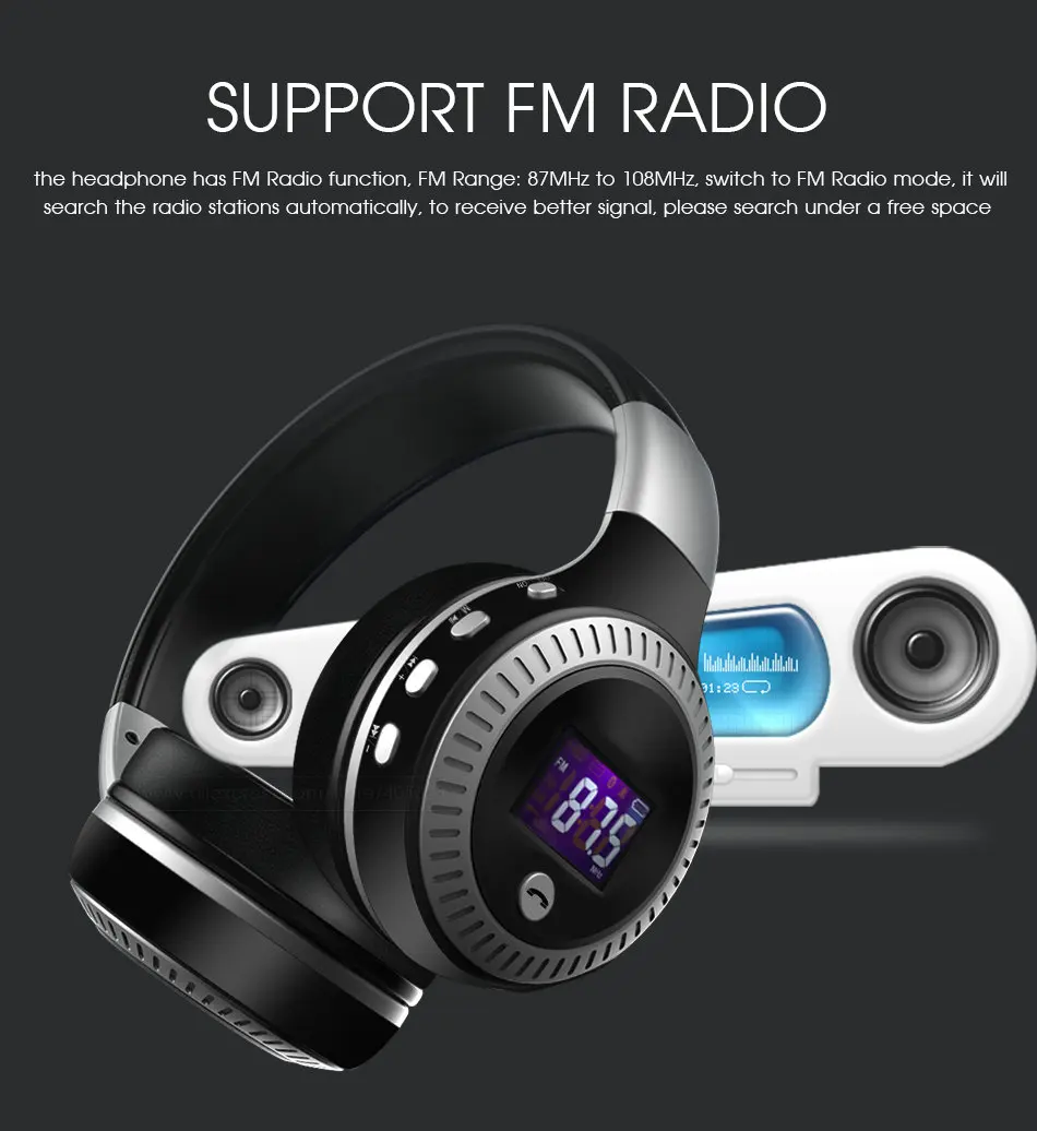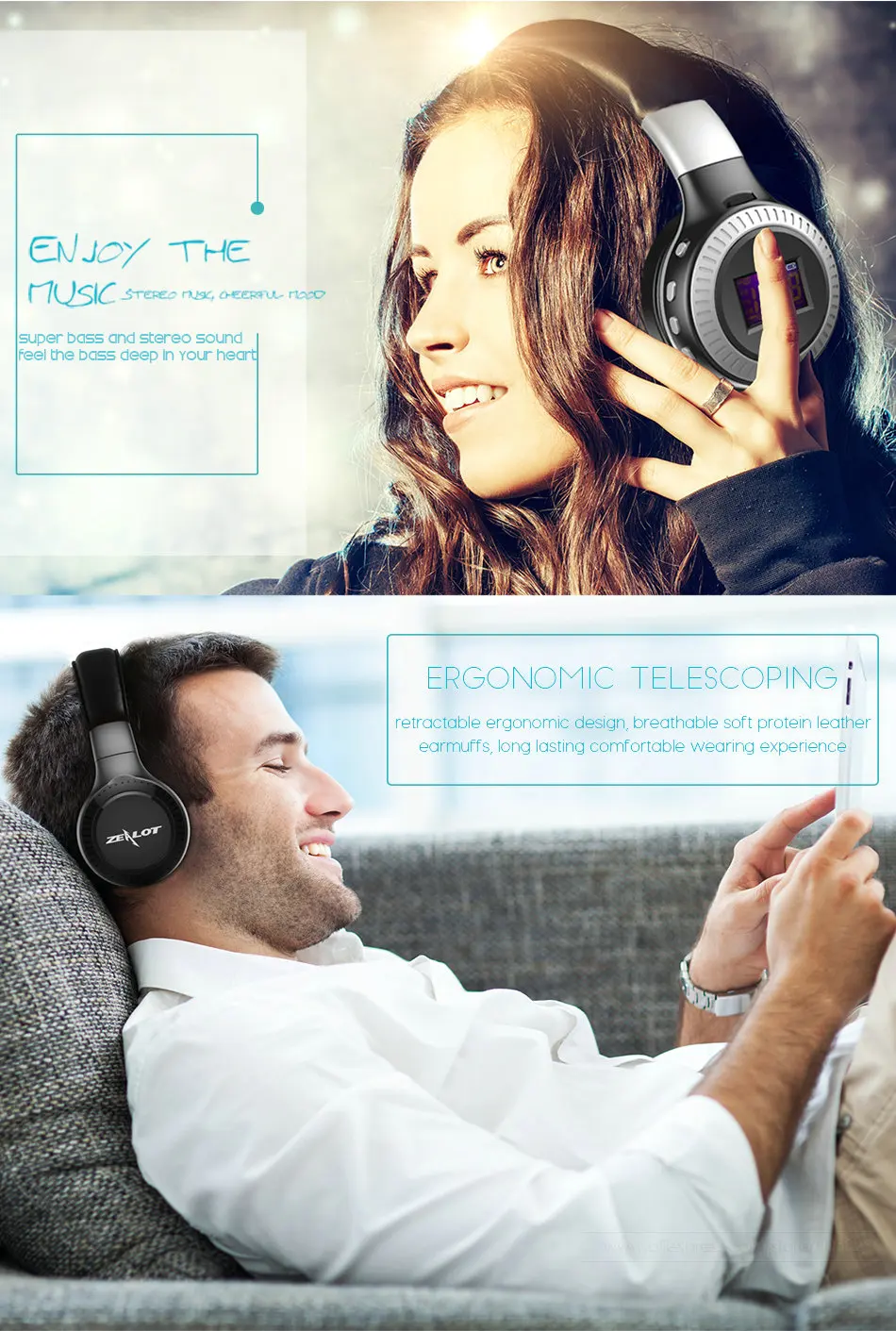 Tai nghe Bluetooth không dây ZEALOT B19 Headphone Bluetooth stereo Bass có micrô FM Radio, màn hình LCD, dùng được Thẻ TF