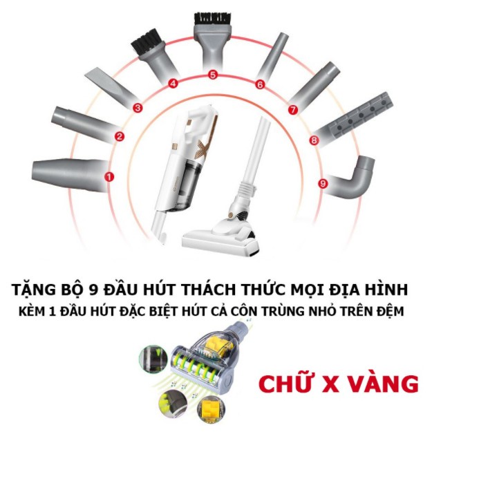 Máy hút bụi cầm tay cao cấp ĐỜI MỚI NHẤT YangZi ứng dụng công nghệ lốc xoáy mạnh kèm các đầu hút khác nhau hút được nhiều vị trí nhỏ