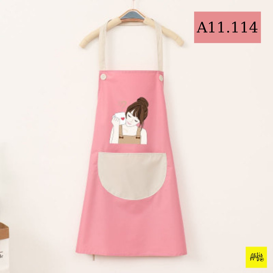Tạp dề chống nước, có túi đựng điện thoại – hình thiếu nữ xinh đẹp – phong cách Hàn Quốc