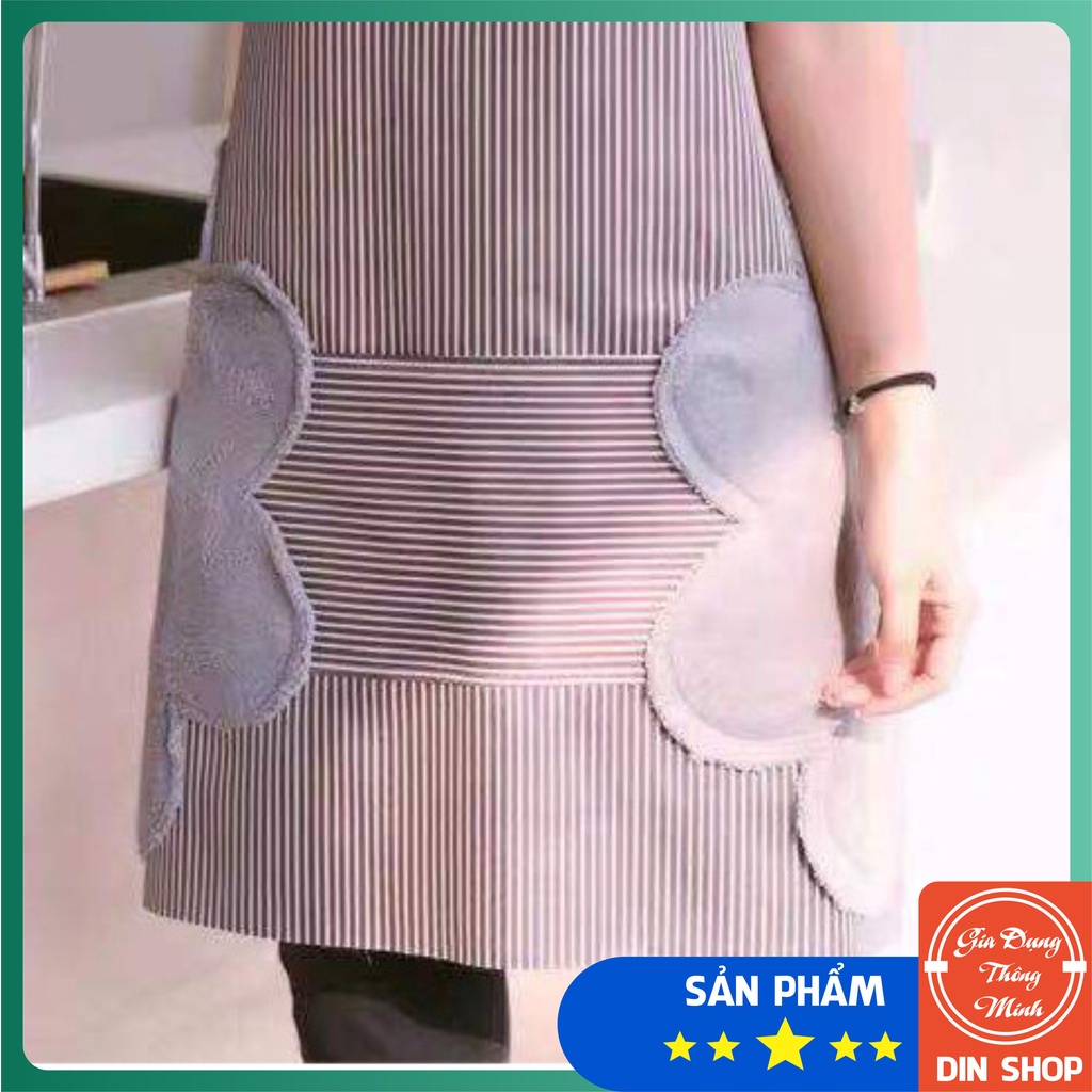 Tạp dề chống thấm nước ⚡DIN SHOP⚡ Tạp dề nấu ăn kẻ hoa có túi và khăn lau tay bên hông, nhiều màu sắc lựa chọn