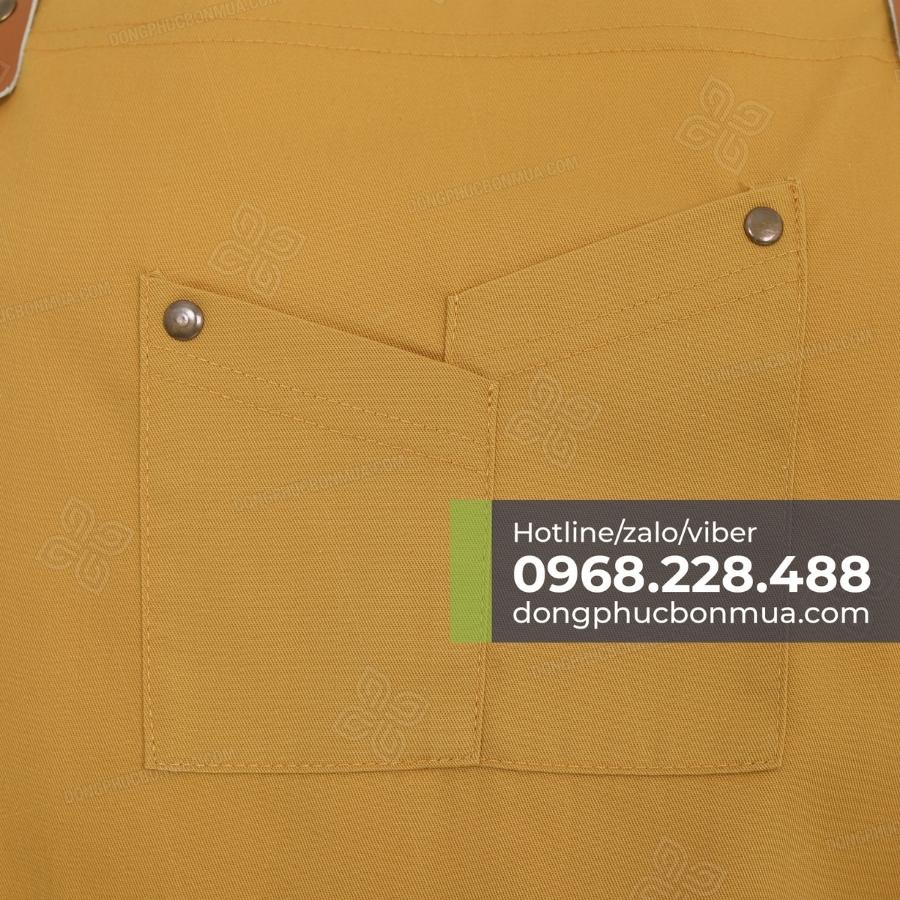 Tạp dề đồng phục chất liệu vải kaki phối dây da đẹp - Thiết kế túi độc đáo, kiểu dáng mới lạ - Đính khuy đồng nổi bật