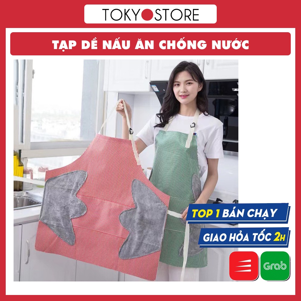 Tạp dề nấu ăn chống nước Họa tiết kẻ hoa Có Túi Đựng Chống Nước Có Khăn Lau Tay Bên Hông Tiện Dụng