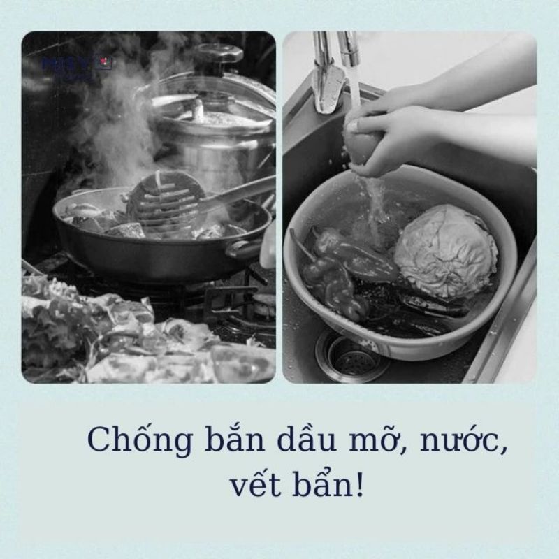 + Tạp dề được làm từ chất liệu polyester dày dặn, chống bám bẩn, chống nước