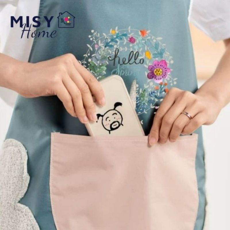 Tạp dề thỏ nấu ăn chống thấm nước có lau tay có túi Misy home tạp dề phục vụ quán cà phê cafe đầu bếp nail spa pha chế