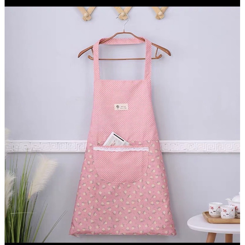 Chất liệu tạp dề: vải thô mềm in hoa dễ thương.